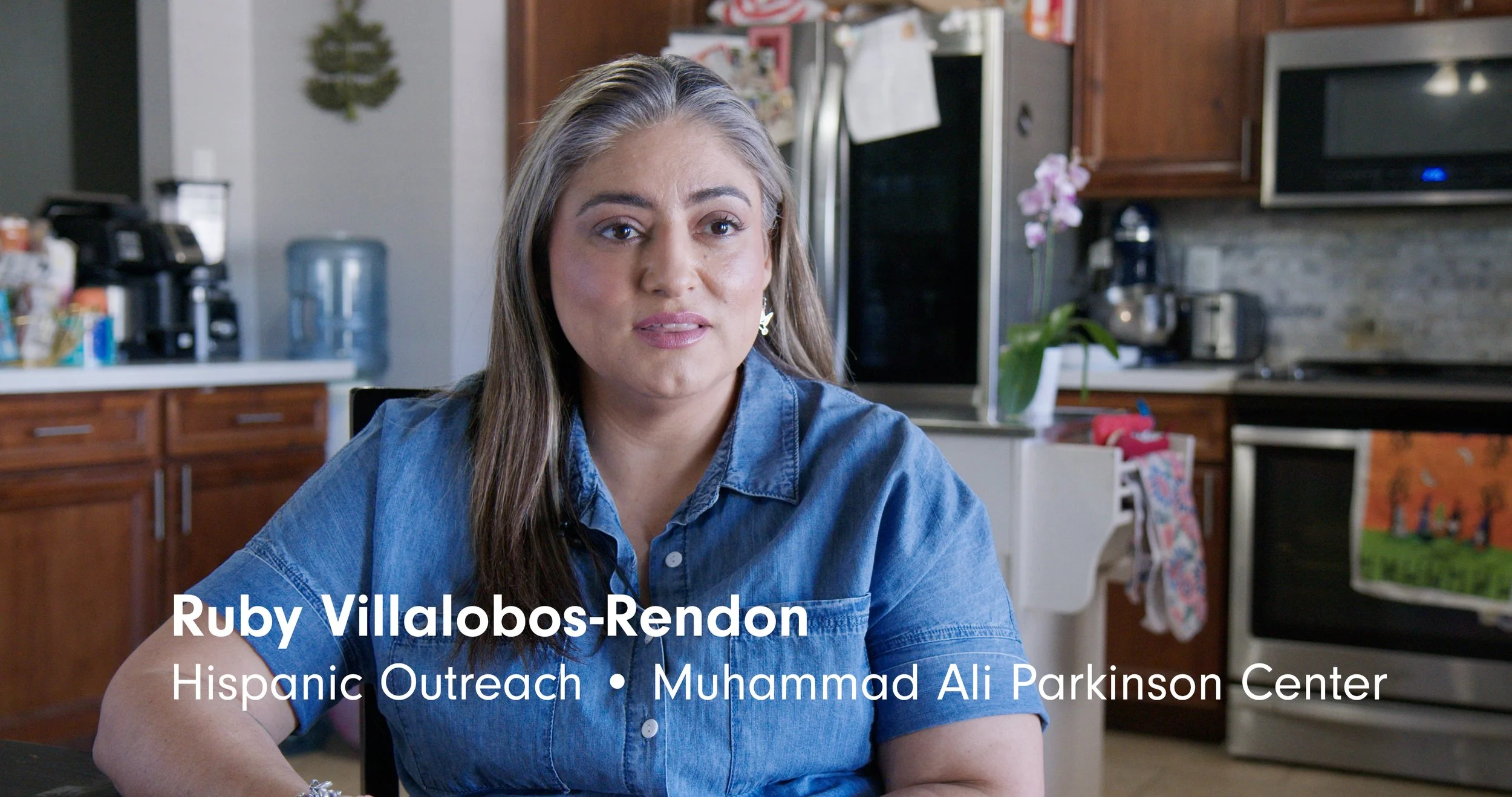 Ruby coordinates Spanish Language Outreach Programming for the Muhammad Ali Parkinson Center in Phoenix, AZ. She first got involved with the center because of the Spanish language programming the center offered her mother, Corina. Corina is now a lead performer with Voces Unidas, the center’s award-winning Spanish choir.